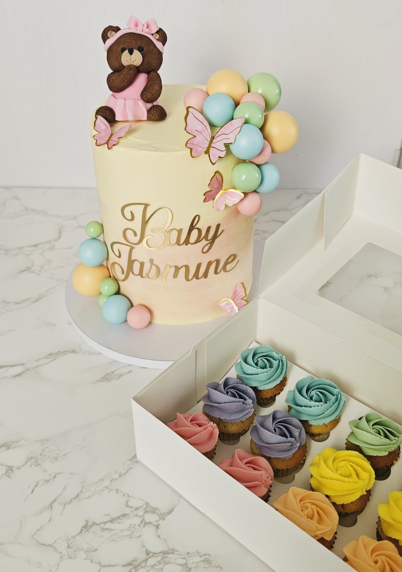 Option to add on matching cupcakes or cupcake favours which come in individual boxes
